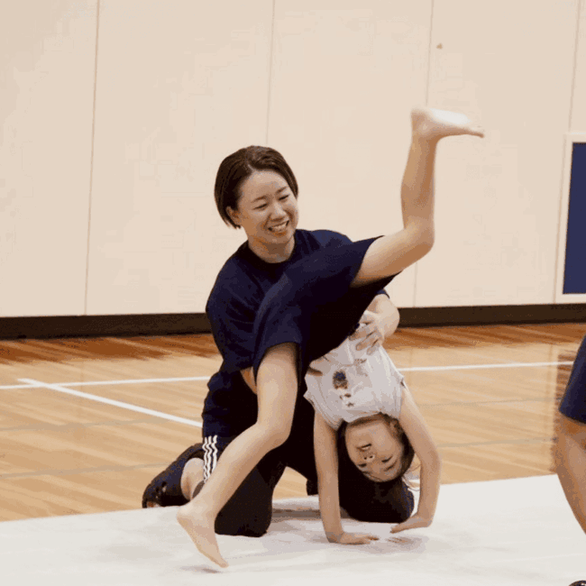 以前は「できないかも」と不安げだったのが、体操を始めてから「挑戦してみよう!」という姿勢に変わりました。 練習中も丁寧に分かりやすく指導して頂けるので、子ども自身がどんどん成長を実感できるようです。 家でも嬉しそうに柔軟や体操の技を披露してくれるので、楽しみながら身体面も精神面も養われているのがよく分かります。