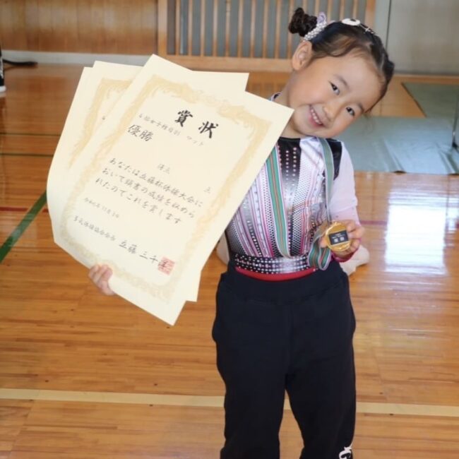 挨拶や話を聞く時の姿勢等もしっかり指導していただき身に付けてくださいます。 練習はとてもメリハリがあり、とても真剣に参加しマットや跳び箱の指導をしてくださいます。また、体を動かしながらゲームをして楽しい時間もあります。年に1回発表会があり、毎年成長を感じることができ、親の楽しみでもありました。発表会後には一人一人にコーチの手作りの賞状やメダルを渡してもらい子どもも喜んでいました。また、発表会で子どもも達成感を味わうことができ自信に繋がったと思います。
